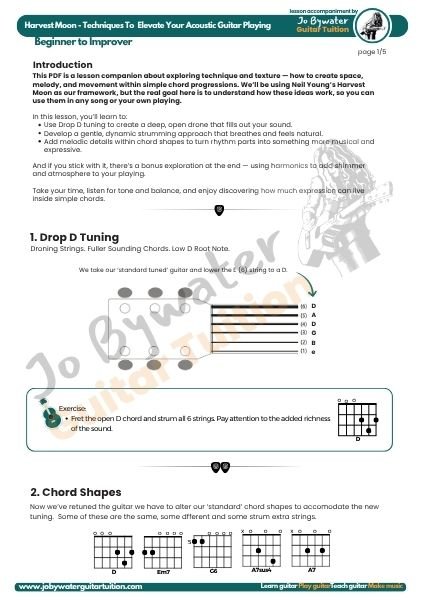 Detailed PDF to accompany video lesson of ‘Drop D Magic: Create That Harvest Moon Sound on Acoustic Guitar’